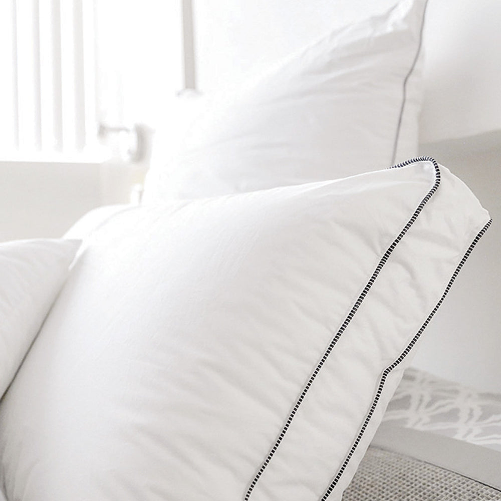 • Su relleno de plumón mantiene su forma original y esponjosidad por más tiempo.