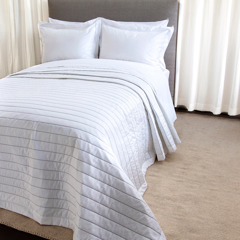 El coverlet es una prenda que resalta tu cama. Para espacios llenos de texturas, nuestra propuesta es un coverlet Monte, lleno de ligereza y gran continuidad. Con franjas horizontales en tono gris que logran dar un efecto de volumen, look mullido.