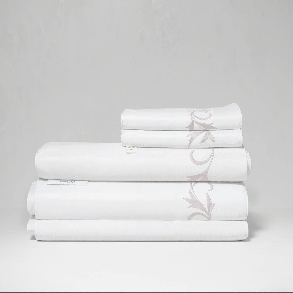 Flora Clásica viste el dormitorio con una elegancia silenciosa, ideal para quienes valoran la tradición, la armonía visual y el lujo natural de los textiles finos.